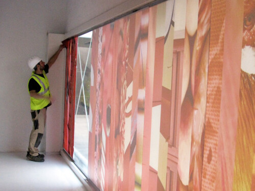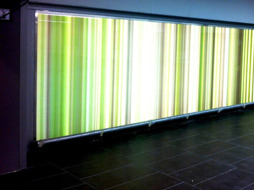 Producció i col·locació d'impresions murals a les vidrieres retroiluminades de les estacions de metro de la línea 9 sud de Les Moreres i El Prat Estació.